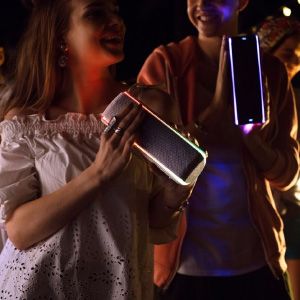 With this feature, one can connect up to 100 Sony SRS wireless speakers with Bluetooth technology and the music along with the lights sync-up so that everyone dances to the same beat. It also allows for the expansion of the reach of musical beats by syncing multiple speakers together.